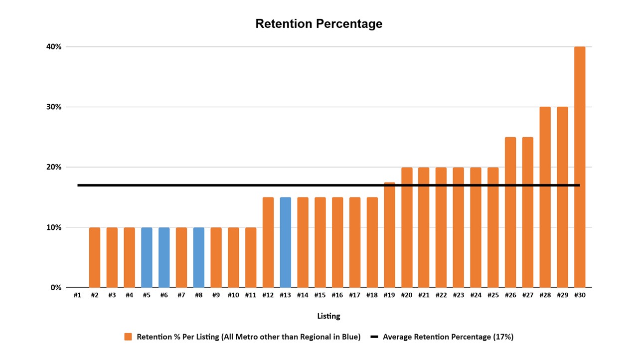 • The average retention is 17% which is the same as six months ago.