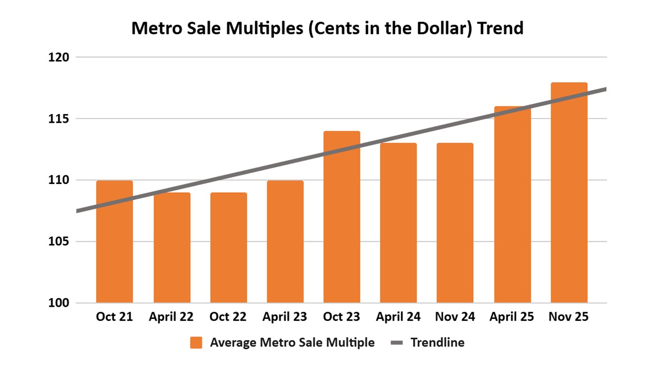 • For metro practices, the average selling price of 118 cents in the dollar is two cents higher than May 2025 (116 cents).